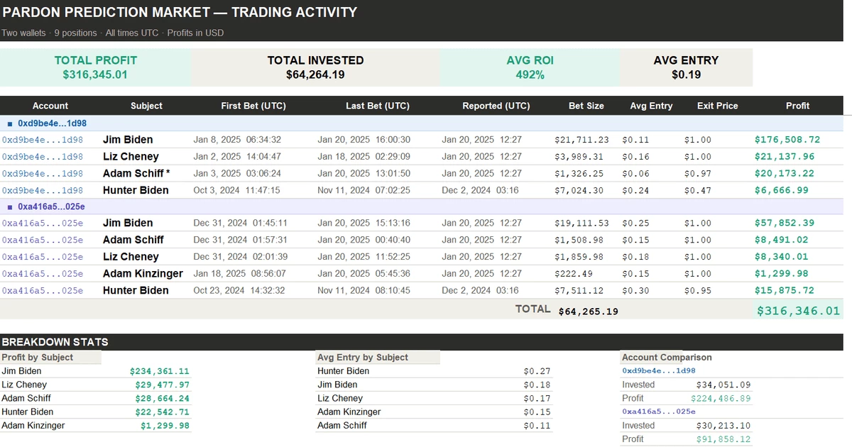 The trades linked to Biden’s pardons show that individuals could have been profiting from confidential government information before President Trump returned to office, when prescient bets related federal policy and military strikes on sites like Polymarket started to draw intense scrutiny.